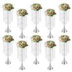 【並行輸入品】クリスタルフラワースタンド 10個 シルバーフラワー花瓶 シャンデリア ウェディングセンターピース トールメタルフラワーアレンジメ