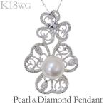 真珠 ネックレス パール ネックレス フラワーモチーフ あこや本真珠 0.13ct ダイヤモンド k18 ホワイトゴールド レディース プレゼント ご褒美 自分買い pu