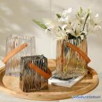 フラワーベース 花瓶 花器 ガラス クリア 小 19cm 透明 ポータブル ガラスベース ガラスボトル アレンジ インテリア 水栽培 生け花 造花 おしゃれ シンプル