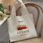 トートバッグ レディース 大容量 ショルダーバッグ トートバック キャンバストートバッグ 食べ物イラスト 帆布 a4 フランスパン アンパン クロワッサン
