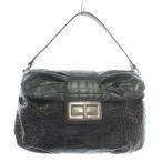 フルラ FURLA ハンドバッグ レザー クロコ型押し ワンカラー ロゴチャーム 黒 ブラック /BB レディース
