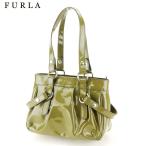 【BIG SALE★30%OFFクーポン】フルラ ハンドバッグ ブランドバッグ バック トートバッグ グリーン シルバー系 エナメルレザー タック入り 【中古】 f1508 ブランド ハイブランド ヴィンテージ 送料無料