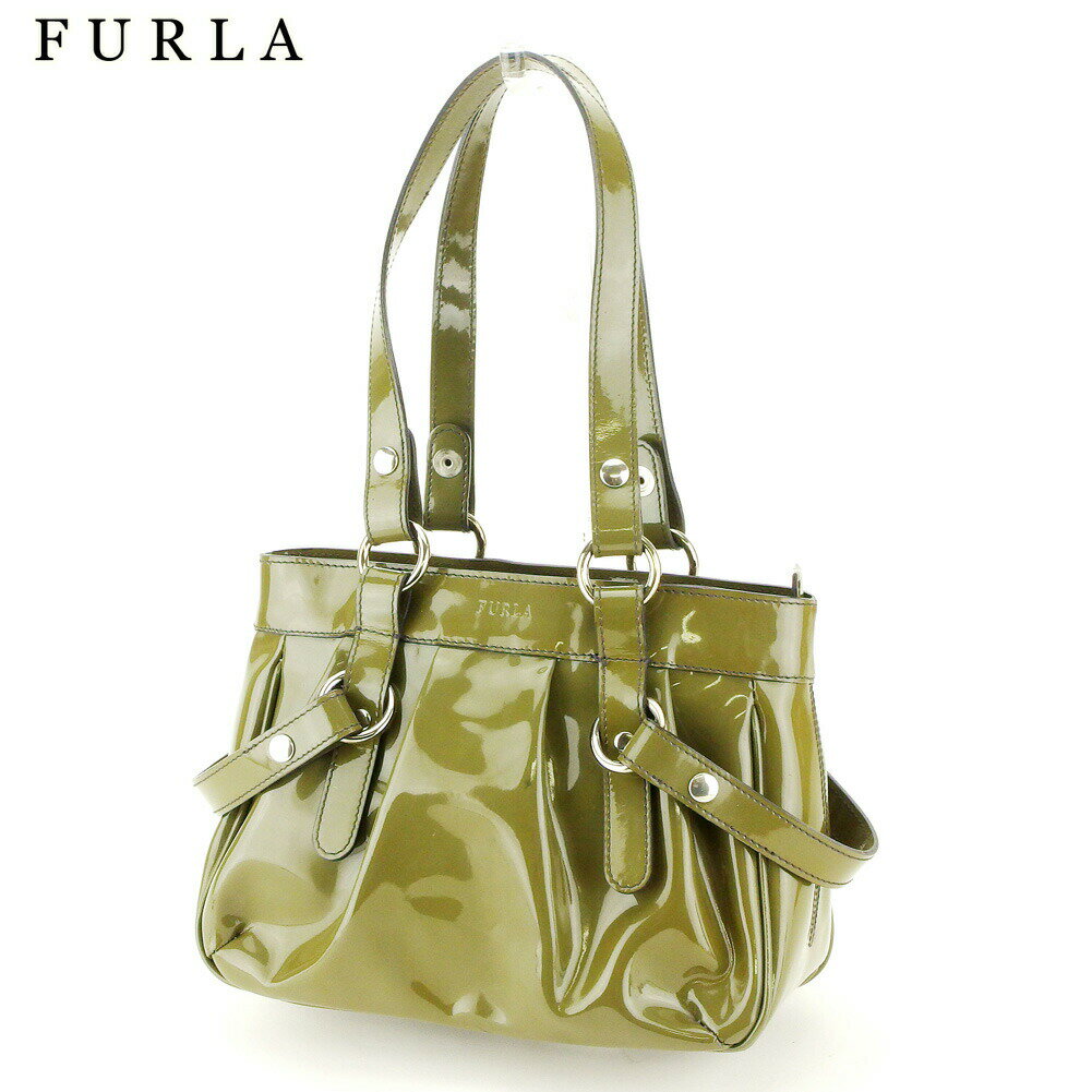 【Fashion Special Fair 30%OFFクーポン】フルラ ハンドバッグ バック トートバッグ バック タック入り グリーン シルバー系 エナメルレザー FURLA 【フルラ】 f1508s 【中古】 ブランド ハイブランド ヴィンテージ 送料無料