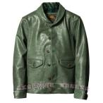 》イタリア産ベジタブルタンニン鞣しヤギ革 レザージャケット 和風 コサック グリーン C&J フルーツカラー メンズ 本革ジャケット スリム ショートコート