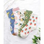 靴下 「5色組」フルーツ柄クルーソックスセット レディース