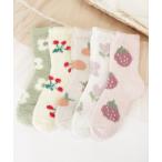 靴下 「5足セット」ふわもこ フルーツ柄 バラエティ クルー ソックス レディース
