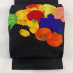 名古屋帯 名品 落款あり 八寸名古屋帯 松葉仕立て フルーツ 黒 正絹 中古