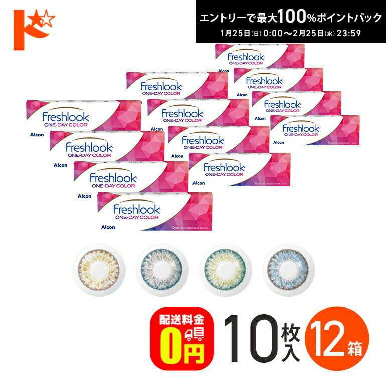 最大100%ポイントバック!2/25の23:59まで♪フレッシュルックワンデーカラー 10枚入り 12箱セット 1日使い捨て ワンデー 度あり 度なし アルコン 高含水 うるおいカラーコンタクトレンズ 1day【送料無料】