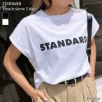 Tシャツ レディース 半袖 夏 秋 フレンチスリーブ タンクトップ 綿100% ロゴ おしゃれ ゆったり ショート丈 ロゴT カットソー トップス 薄手 コットン STANDARD