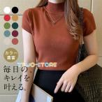 サマーニット レディース 半袖 ハイネック トップス プルオーバー インナー 無地 春 夏 秋 薄手 体型カバー シンプル エレガント 涼しい 着回し