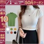 ニット 半袖 ハイネック レディース トップス プルオーバー インナー 無地 春 夏 秋 薄手 体型カバー シンプル エレガント 涼しい 着回し