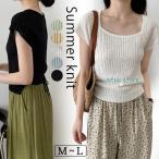 ニット レディース 半袖 サマーニット ニット フレンチスリーブ ニットカットソー トップス 秋 薄手 ニットソー プルオーバー セーター リブニット 柔らか 体
