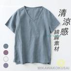 Tシャツ ブラウス レディース 夏 半袖 綿麻カット カットソー シャツ トップス 半袖 tシャツ プルオーバー インナー リネン 綿麻 コットン Vネック フレンチ袖