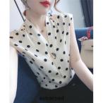 爆買 シフォンブラウス ノースリーブ タンクトップ レディース 薄手 カジュアル 水玉柄 シフォンシャツ インナー 涼感 オシャレ 袖なし 通勤 OL夏