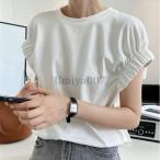 爆買 Tシャツ レディース 半袖 フレンチスリーブ ギャザー ボリューム袖 黄色 イエロー フレンチ ゴム 袖ゴム 白 お洒落 韓国 シンプル プルオーバー ゆったり