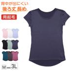 レディース 肌着 半袖 フレンチ袖 インナー 無地 丸首 両起毛 後ろ丈長め M〜3L (裏起毛 あったかインナー 起毛 暖かい 防寒 冬 アンダーウェア) (在庫限り)