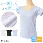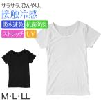 肌着 フレンチ袖 インナー 半袖 レディース 婦人 接触冷感 M〜LL (アンダーウェア 速乾 UV対策 紫外線対策 黒 白 下着) (在庫限り)