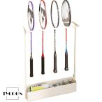 収納ラック フロアスタンド型 傘立て 傘収納 テニスラケット収納ラック、ホームバドミントンラケットディスプレイスタンド、下部収納バスケット付き
