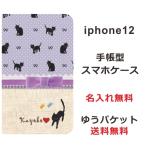 iPhone12 手帳型ケース アイフォン12 ブックカバー らふら 黒猫
