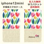 iPhone12 Mini 手帳型ケース アイフォン12ミニ ブックカバー らふら 北欧デザイン チューリップ