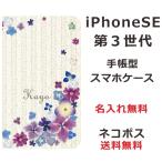 iPhone SE 第3世代 手帳型ケース アイフォンSE ブックカバー らふら ビビットブルーフラワー