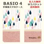 BASIO4 手帳型ケース kyv47 ベイシオ4 ブックカバー らふら 名入れ 北欧デザイン ピンク しずく
