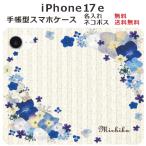 iPhone17e ケース 手帳型 アイフォン17e 名入れ ブック型ケース ブックカバー らふら ビビットブルーフラワー