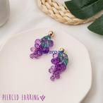 ピアス スタッドピアス レディース 女性 アクセサリー 耳飾り 両耳用 ぶどう ブドウ グレープ フルーツ ビーズ クリア 透明 揺れる 大ぶり シン