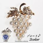 ブローチ レディース アクセサリー 女性用 フェイクパール ラインストーン ブドウ おしゃれ きれいめ きらきら グレープ ファッション小物 ギフト