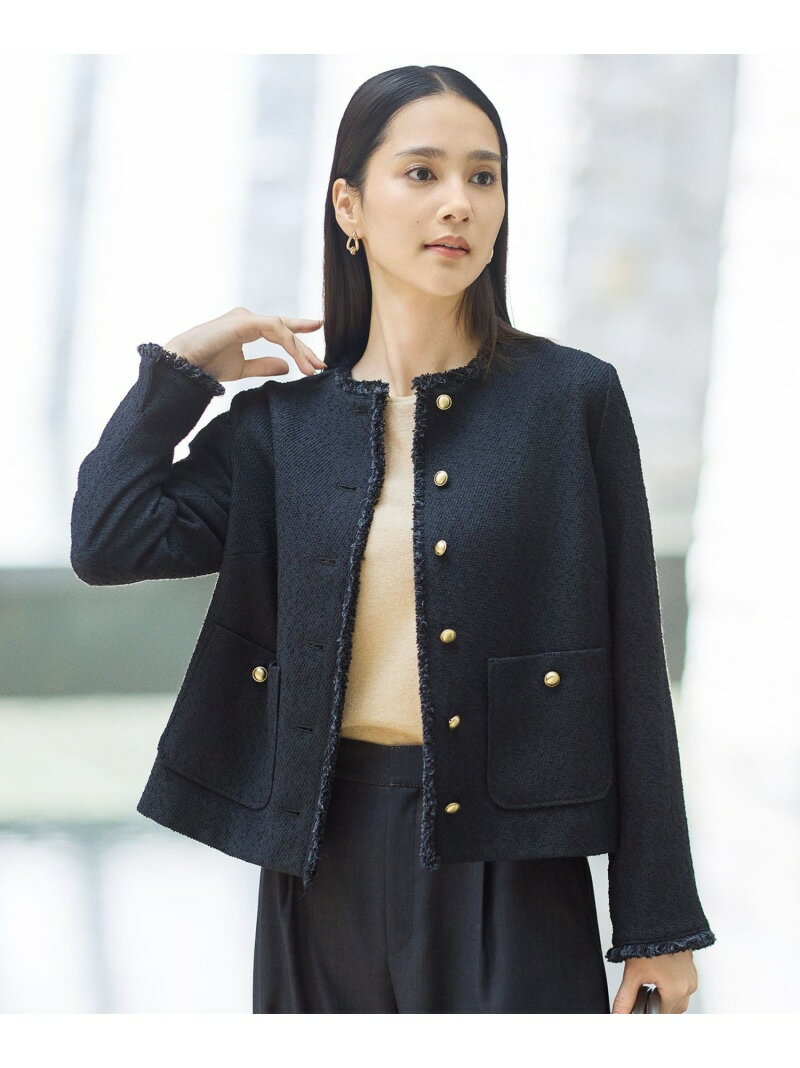 【SHIHOさん着用】ブライトリングツイード ジャケット 自由区 ジユウク ジャケット・アウター ノーカラージャケット グレー ネイビー ベージュ【送料無料】[Rakuten Fashion]