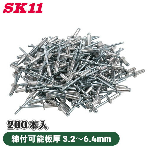 SK11 ブラインドリベット 200本入り SA6-4LB 4.8mm径 締付可能板厚 3.2〜6.4mm アルミ製 ハンドリベッター 業務用