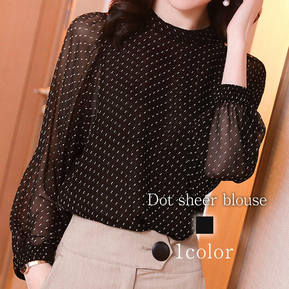 【\クーポン利用で20%OFF!/】 ブラウス レディース ドットシアーブラウス おしゃれ 秋 黒 カットソー Tシャツ フリル レース オフィス ワンピース 長袖 白 フォーマル 高品質 人気 シフォン 春 シャツ ノーアイロン ブランド カジュアル 安い スーツ