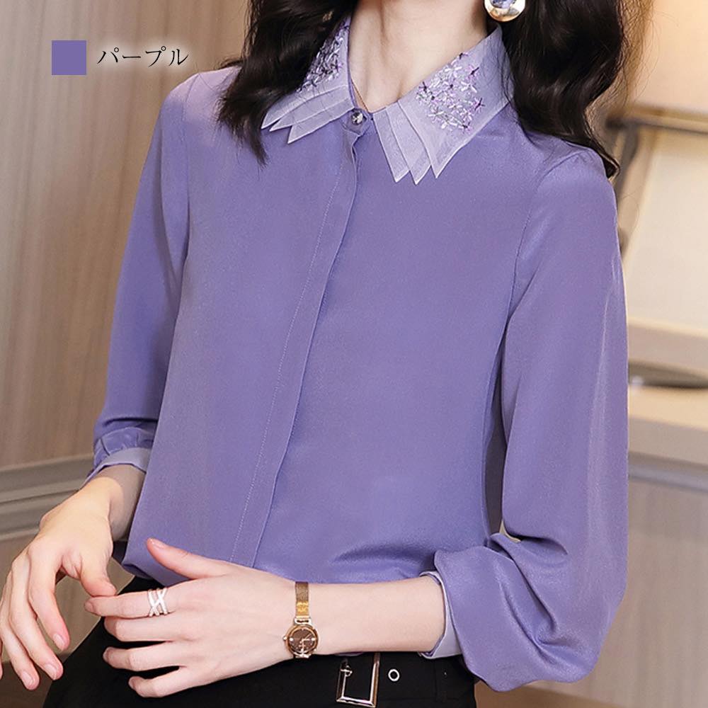【\クーポン利用で20%OFF!/】 ブラウス レディース パープルシャツブラウス おしゃれ 秋 黒 カットソー Tシャツ フリル レース オフィス ワンピース 長袖 白 フォーマル 高品質 人気 シフォン 春 シャツ ノーアイロン ブランド カジュアル 安い スーツ