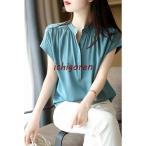 ブラウス レディース 40代 春夏新作 オシャレブラウス シフォンブラウス フレンチスリーブ 半袖トップス Vネックブラウス 大人通勤 ゆったりシャツ 30代50代