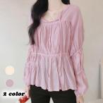 Vネック シフォンブラウス シフォンチュニック ペプラムトップス レディース トップス