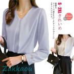 ブラウス レディース 長袖 トップス Vネック シャツブラウス フォーマル スーツ インナー シフォン フロントタック きれいめ カジュアル