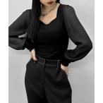 tシャツ 「LVEU.」ハートネックシアースリーブトップス / トップス ハートネック ニット シアー シフォン 長袖 ニット ブラウス ドッキング