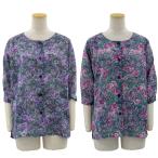涼感 スナップボタン レースプリント 7分袖 スモック ブラウス かっぽう トップス シニアファッション 春夏 母の日 介護 施設 デイザービス