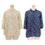 七分袖綿楊柳スモック 前開き 綿100% 日本製 M/L/LL ブラウス 前開きシャツ シニア 婦人服 春夏 プレゼント 60代 70代 80代