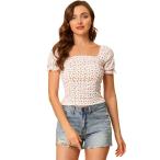 uxcell Allegra K フローラルブラウス スモッククロップトップ スリムフィット レディース ホワイト M