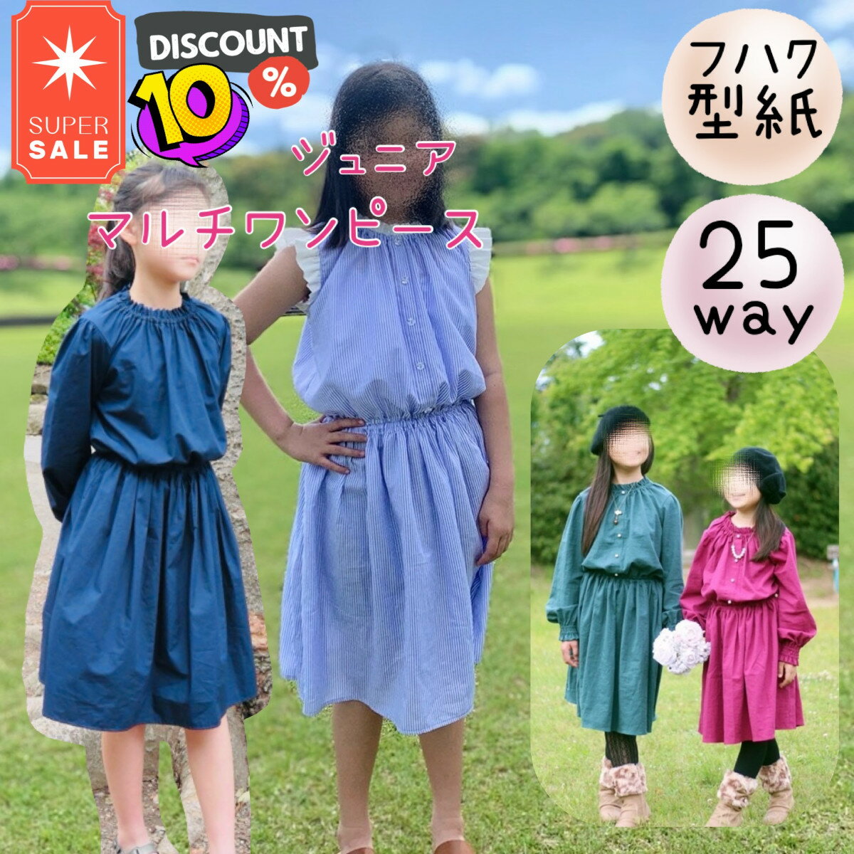 \12/4 20:00~ 10%off スーパーセール 全品PT5倍 更に限定クーポン企画/ ジュニア 型紙 子供服 子供 ワンピース 商用利用 スモック ベビー 女の子 お洒落 パターン ブラウス スカート フォーマル セレモニー|25wayマルチワンピース