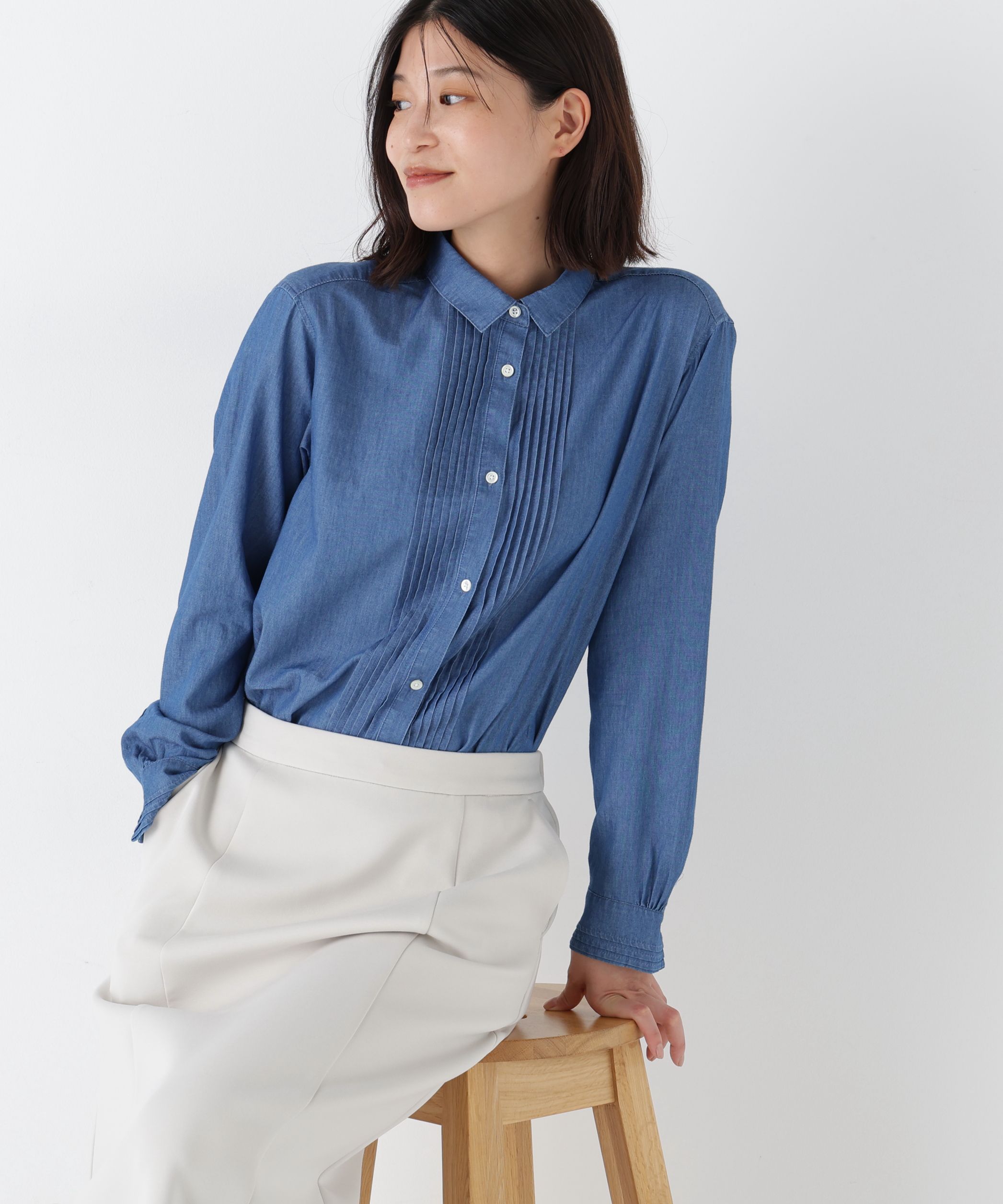 human woman(ヒューマン ウーマン)/◆ライトオンスデニムピンタックブラウス