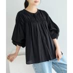 ブラウス シャツ レディース トップス チュニック バンドカラー 長袖 7分袖 七分袖 パフスリーブ ボリューム袖 ボリュームスリーブ ギャザー