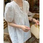 ブラウス シャツ 「 ammy. / エイミードット 」 フリル エンブロイダリー パフスリーブ ブラウス チュニック レディース