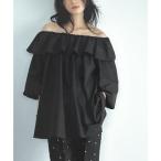 エルフランク ELFRANK 2wayオフショルダーフリルチュニックブラウス(ブラック)