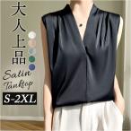 ブラウス シャツ ダブルサテンノースリーブトップス レディース