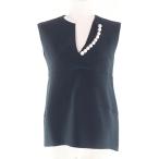 極美品★YOKO CHAN ヨーコチャン YCB-218-092 フェイクパール付 ノースリーブ ブラウス ネイビー 36 日本製 正規品 レディース