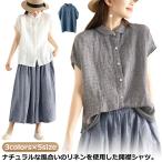 ブラウス シャツ リネンブレンド エプロントップス ノースリーブ レディース