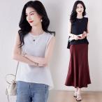 2枚で送料無料 レーストップス レディース 透け感あり 人気再販売 tシャツフォーマルにも 薄手 ニット レースブラウス トップス 無袖 レディース ニットベスト夏ノースリーブ無地 両側レースデザインタンク カジュアル 通勤 おしゃれ着 4色