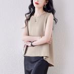 ブラウス ノースリーブ レディース 夏服 丸首 無地 トップス オフィス フォーマル スーツ インナー tシャツ 麻 涼しげ 着回し デイリー 大きいサイズ展開 春 夏